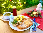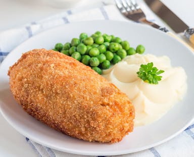 Kotlet drobiowy w panierce Panko z frytkami i surowka